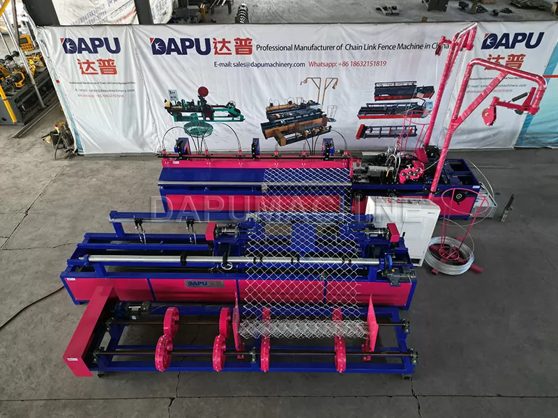 DAPU's Chain Link Fence Machine offers precise CNC control for mesh width and length, with Delta servo motor-driven wire feeding. It features fully automatic twist/knuckle mesh sides and an optional compacting machine for efficient packing. Ideal for producing chain link fences used in residential, industrial, and security applications.